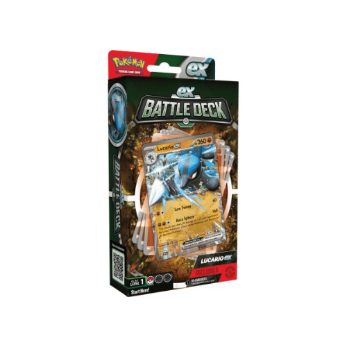 Brawler Lucario en zijn vrienden delen rake klappen uit met dit kant-en-klare EX Battle Deck onder leiding van de krachtige Lucario EX. In deze doos vind je alles wat je als Pokémon-trainer nodig hebt om meteen te beginnen met spelen. Een deck van 60 kaarten dat direct uit de doos speelbaar is, schadetellers, een mooie metalen munt en andere extra’s maken je klaar voor de strijd!
