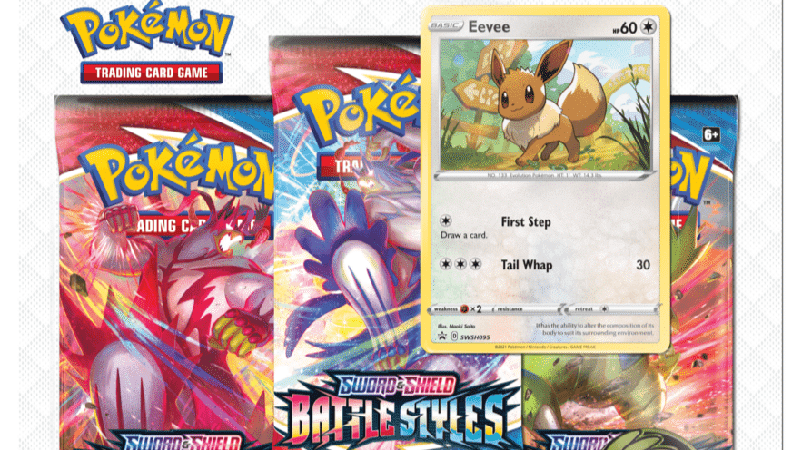 Eevee 100/S-P promo van het Japanse ‘V Starter Deck Battle Get Eevee’ evenement en Jolteon van de Japanse Pokémon Gym Card Set zullen worden opgenomen in de Battle Styles 3-Pack Blisters.